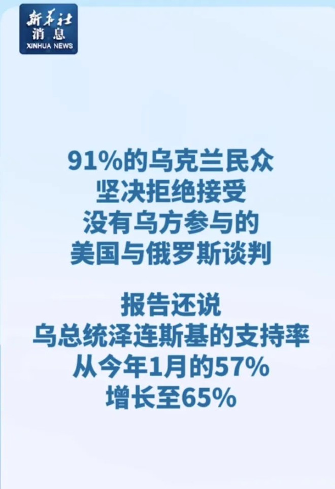 類似的事情,前兩天另一大官媒也專門報道了,就是美國新政策後,澤連斯基在烏克蘭的支持率大幅度上升,他同他的人民堅決反對美俄的單邊談判。
