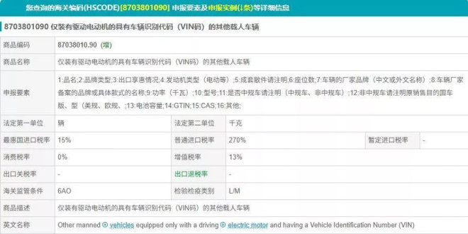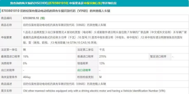 脖子哥翻閱了具體的海關編碼,這次新增了具有識別代碼的純電車 (編碼:87038010.90) 這一類目,與原來二手純電車(編碼:87038010.10)並不一樣。