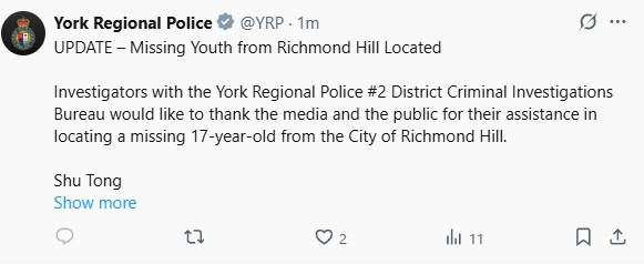 警方更新:列治文山17歲華裔少女已經找回!Thank Goodness !