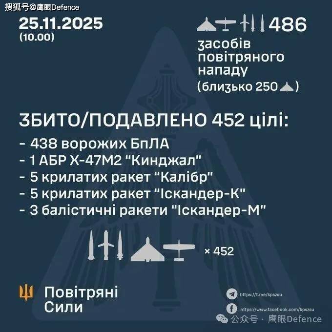 24日夜到25日淩晨,俄軍再次對烏克蘭發動一次大規模空襲,根據烏克蘭軍方發布的戰報,俄軍在本次空襲中發射了464架各類無人機和4枚“匕首”空射彈道導彈、3枚“伊斯坎德爾-M”或KN-23彈道導彈、7枚“伊斯坎德爾-K”巡航導彈和8枚“口徑”巡航導彈,烏克蘭軍隊擊落了438架無人機、1枚“匕首”、5枚“伊斯坎德爾-K”、5枚“口徑”和全部3枚“伊斯坎德爾-M”,跟最近的幾次大空襲一樣,烏軍的防空攔截率相當高。