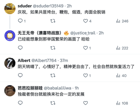 在海外X平台上有不少網友調侃說,委內瑞拉給經濟崩潰的中共國指明了方向。“獨裁垮塌後,人民突然開始消費了,也有錢了,才一天經濟就變好啦!”