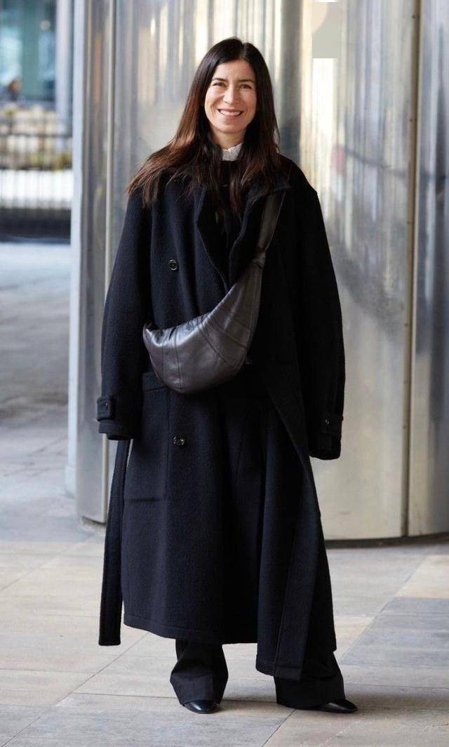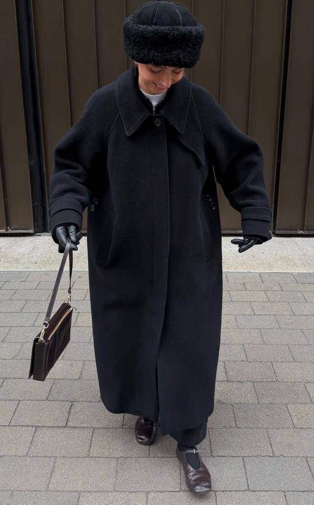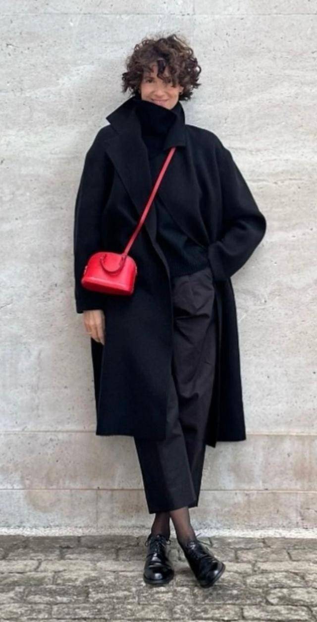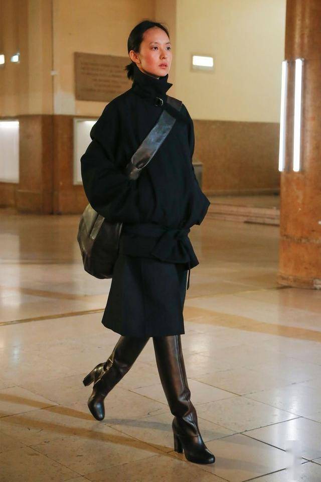 及腳踝長度的黑色大衣,上身超有安全感,利落的剪裁,修飾出挺拔的身形,照樣很高級。