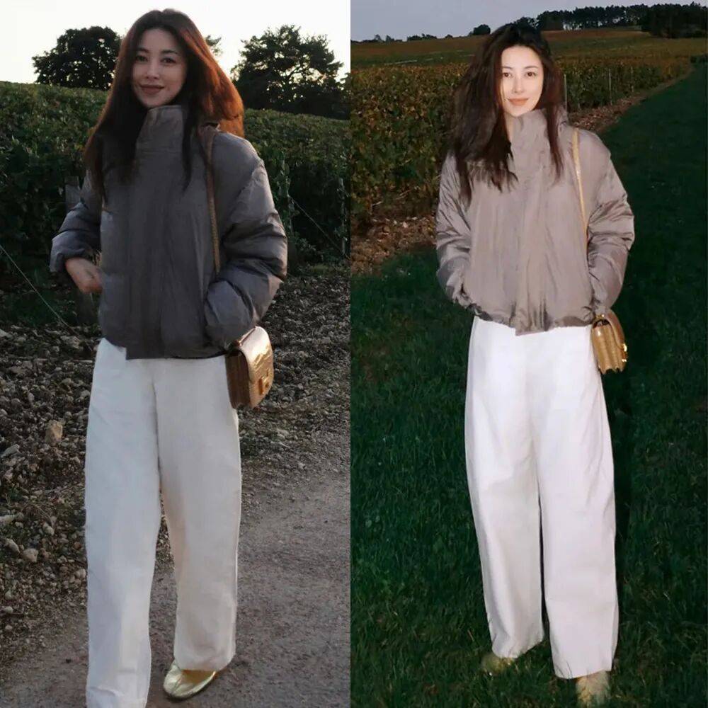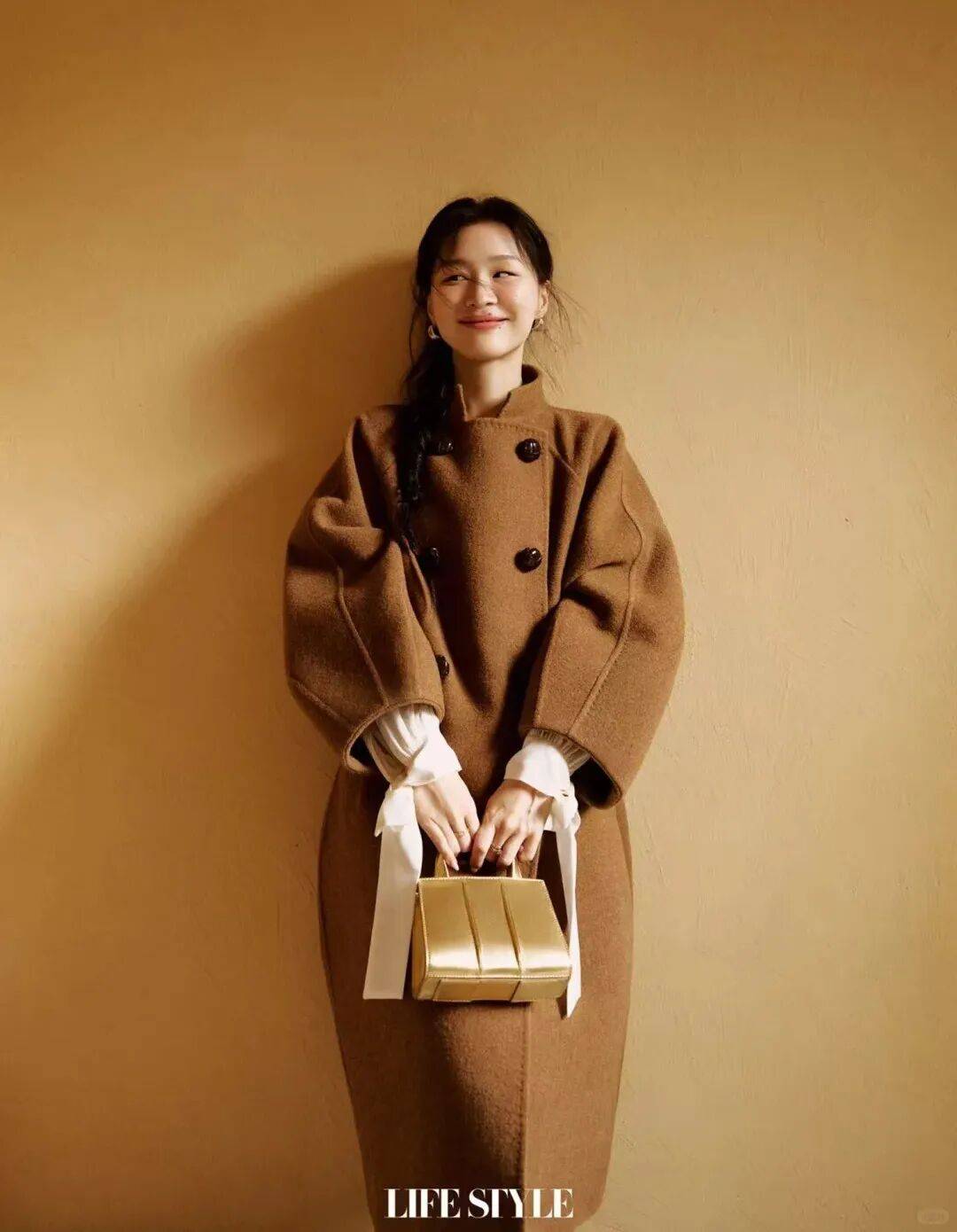 同款的褐色被朱珠搭配得很種草,褐色和白色的組合很雅致隨性。▼