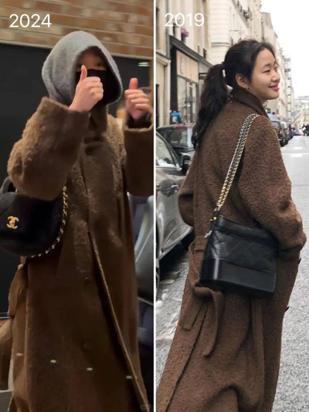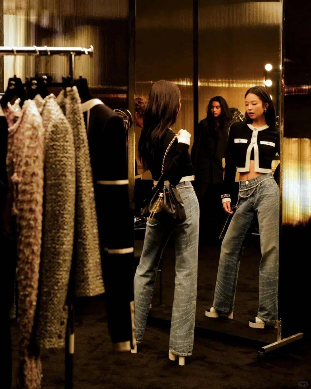 Jennie身高163cm左右,多數時候她的外套都愛選短款,整體更顯比例。