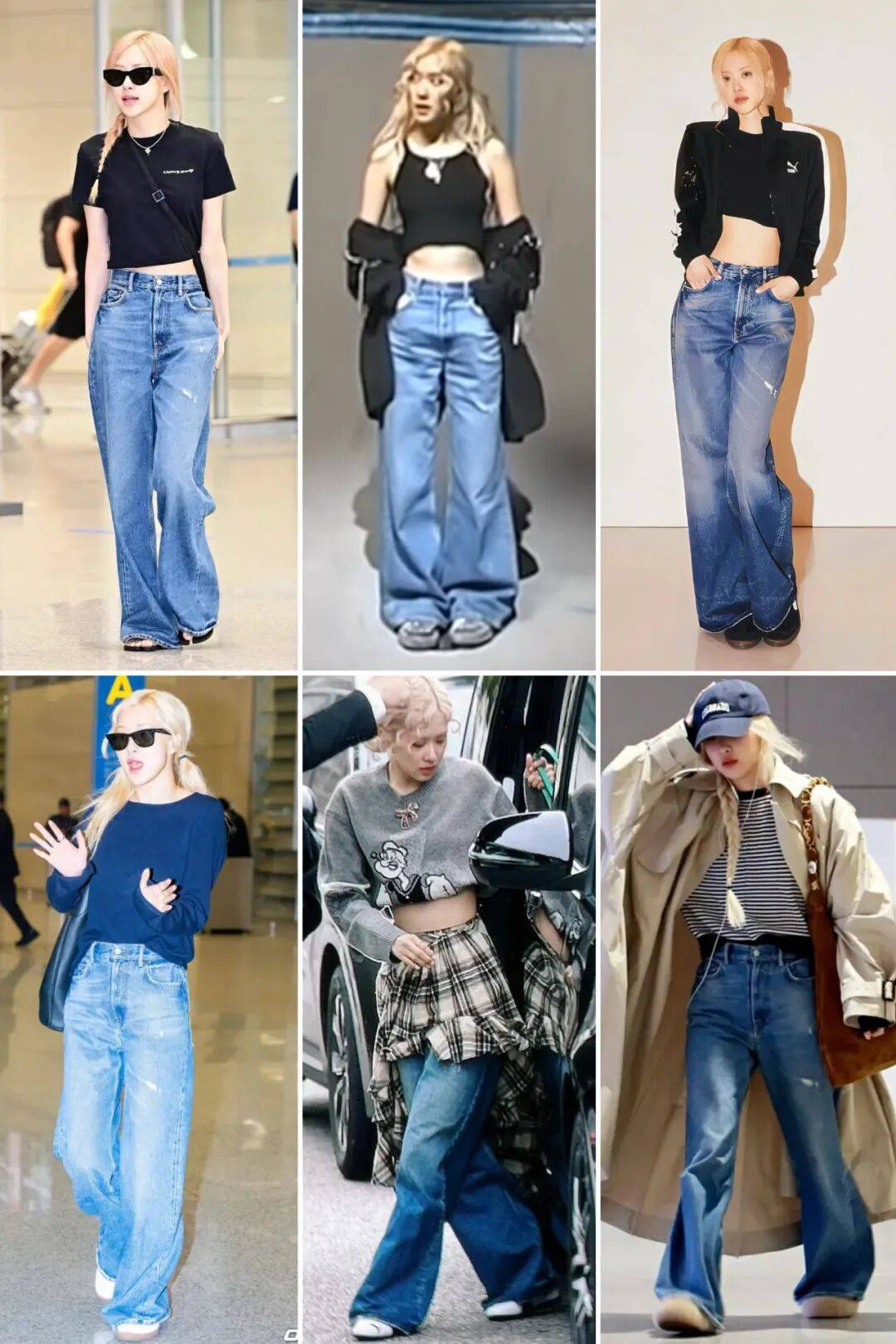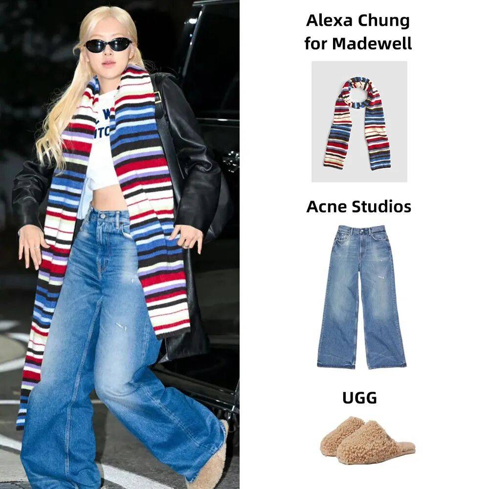 Rosé上周的機場穿搭又第一百零八次穿上了Acne Studios的這條闊腿牛仔褲。▼