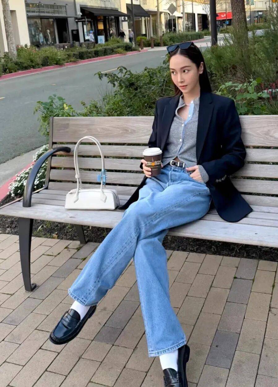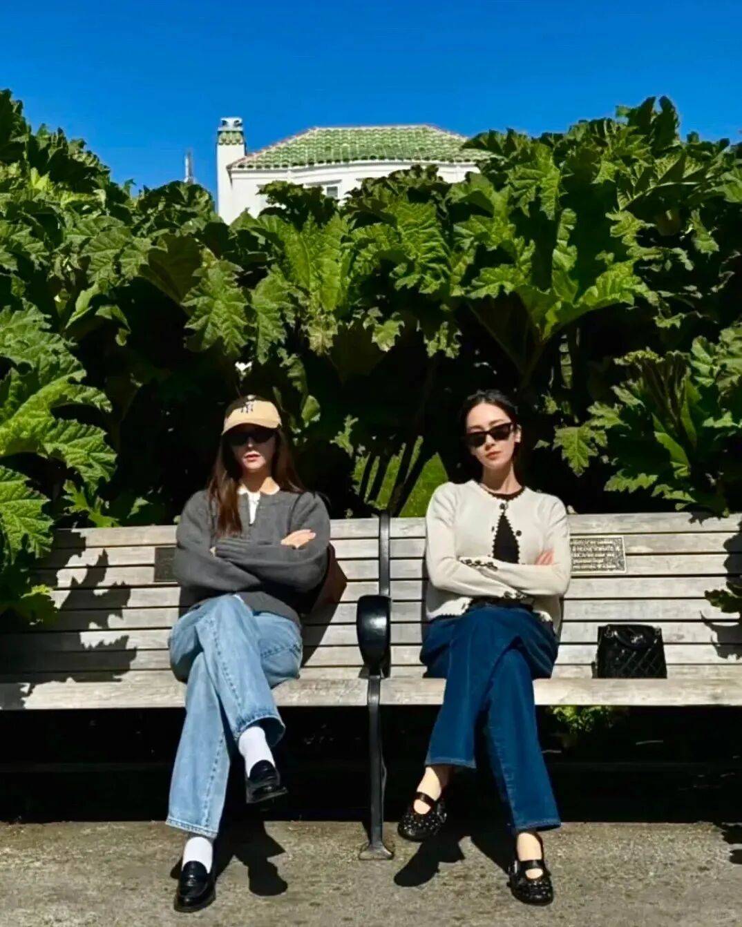 像鄭秀晶、鄭秀妍姐妹,私服大致路線都是美式老錢風穿搭,她們就很少會選過於甜美或花裏胡哨的款式,反複買的就是樂福鞋、版型好的外套、基本款針織衫這些單品。▼