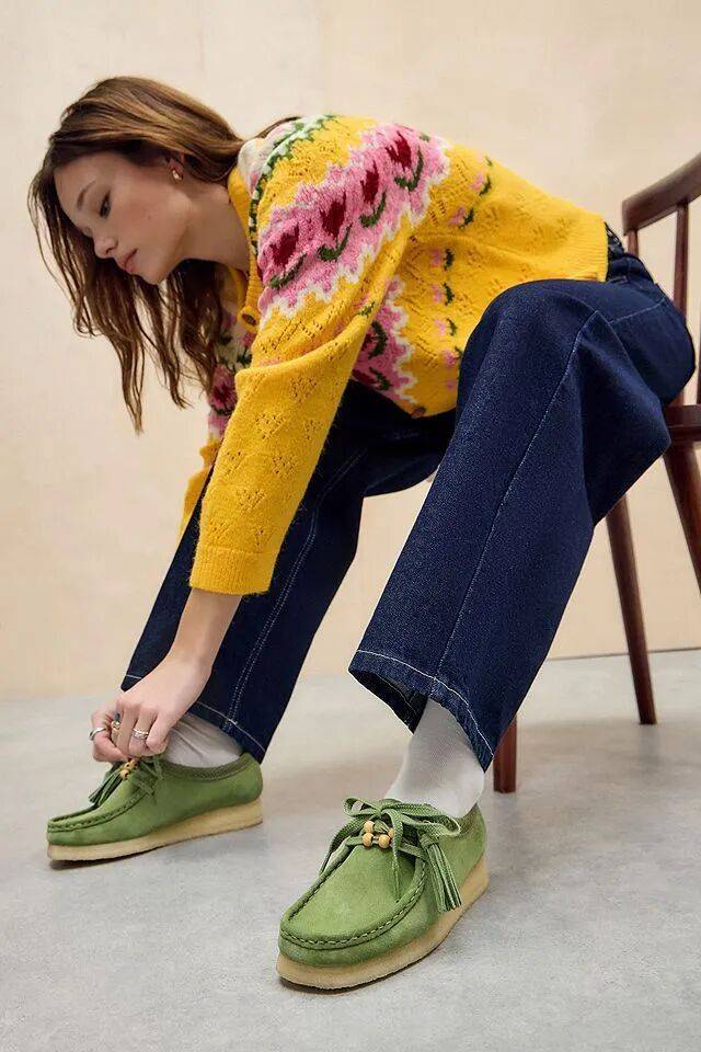 除了基礎的沙色、棕色外,很多品牌這兩年都推出了糖果色的袋鼠鞋,風格更加活潑,通過不同單品組合,可以搭配出更多有趣的冬季色彩穿搭。▼
