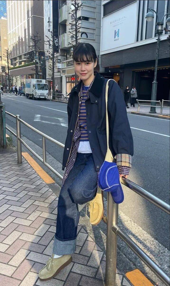 工裝外套+牛仔褲+袋鼠鞋的穿搭公式可以照抄,今年特別流行。▼