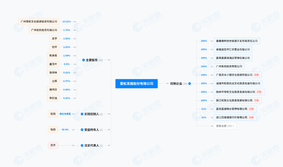 作為ST雪發的實際控製人,張勁通過廣州雪鬆文化旅遊投資有限公司及廣州君凱投資有限公司合計持有公司69.4%股份,其中68.5%的股份早已被悉數質押且司法凍結,近乎全部實控權股權均處於受限狀態。