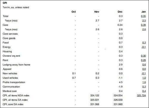 剔除能源和食品價格,1月核心CPI同比漲幅則有望從12月的2.6%降至2.5%。核心環比漲幅則將從0.2%升至0.3%。