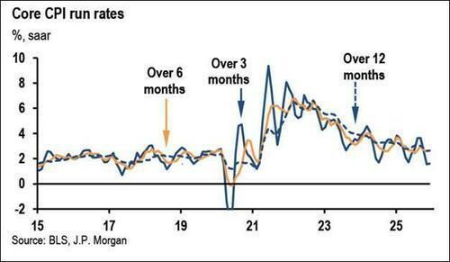當然,鑒於基數效應的消退,Feroli預計1月CPI同比仍將從去年12月的2.7%降至2.5%。考慮到額外關稅相關成本將在今年轉嫁給消費者,以及過去一年貿易加權美元持續走軟的潛在傳導影響,摩根大通繼續預計通脹將在今年某個時期重新加速。