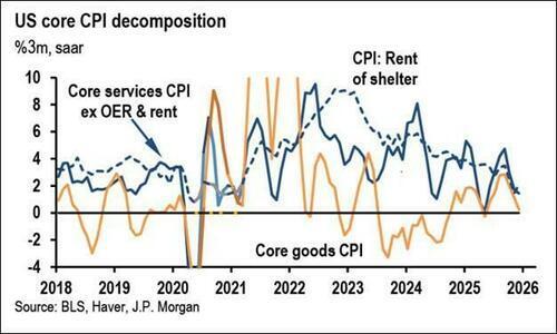 除食品和能源外,摩根大通預測核心CPI將在1月上漲0.4%(更精確的數值為0.39%)。殘餘季節性可能會推高價格——特別是服務業,使其相對於12月有所上升。長期以來,疲軟的12月讀數之後往往伴隨著強勁的1月讀數。如果該行的預測實現,核心CPI同比通脹率將穩定在2.6%。