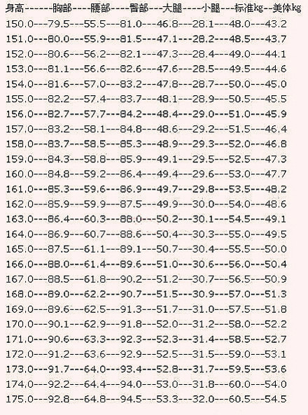 女生標準身材對照表,精確到小數點。留著監督自己用!