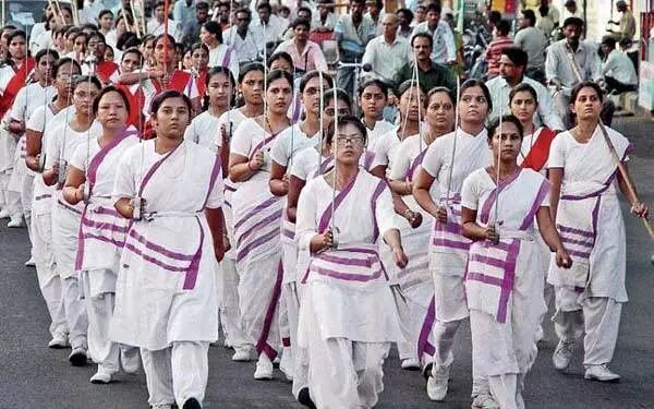 RSS還有並行的婦女組織“全國婦女誌願者委員會”(Rashtra Sevika Samiti,簡寫也是RSS),同樣組織會員統一著裝,軍事訓練,舞槍弄棒,砍刀握劍。