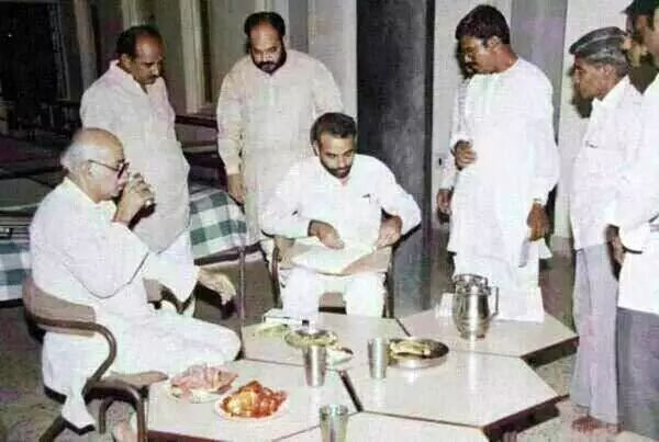 左側飲茶者為黨領袖阿德瓦尼,莫迪實際已處於決策中心