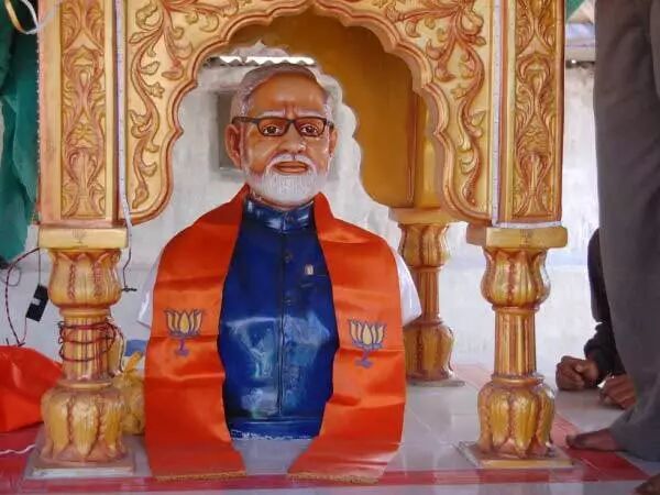 在古邦中心艾哈邁德巴德塑起的莫迪像,當地民眾頂禮膜拜