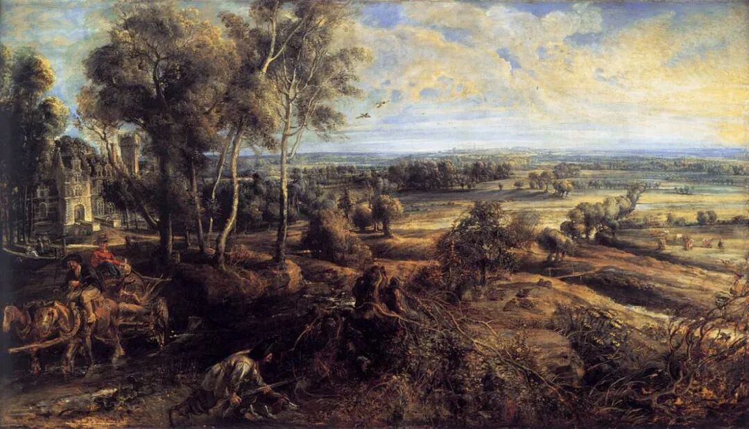 歐洲古代的風景畫,是站在窗戶後看到的風景,窗戶如同鏡框,屬於“焦點透視”(單點透視),並且是用單眼盯著焦點繪製的。