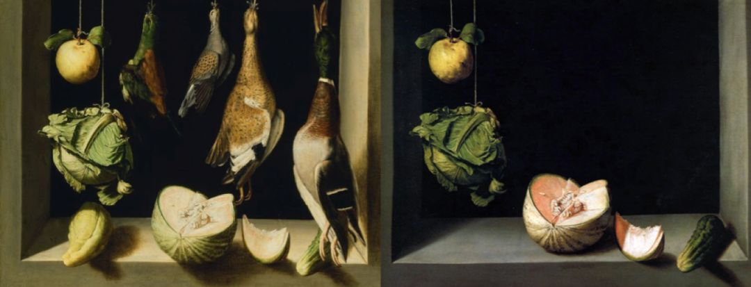 科坦的超級寫實靜物畫,極可能是這樣畫出來的。而且利用此類幻燈機般投影設備,可以把畫麵的某部分或精確地複印到另一幅畫上,如下兩幅靜物。