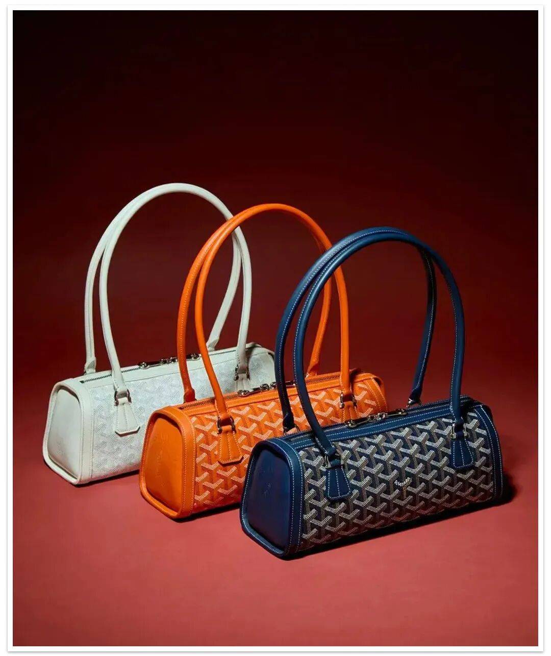 Goyard的高級,從來不在logo上,而在質感、紋理、輪廓和耐造度。經典Y字印花耐磨、防水,而這隻法棍包還擁有著品牌拿手的挺括感,長時間使用也不易變形,越用越有複古質感。