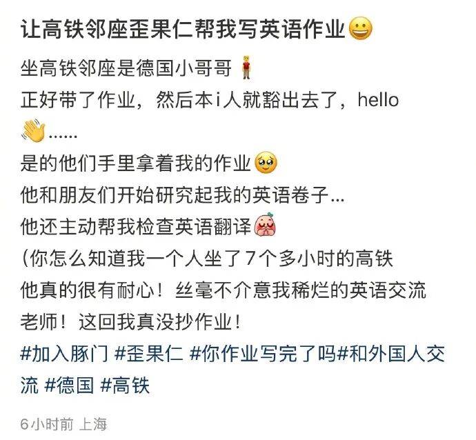 讓高鐵鄰座外國人幫我寫英語作業