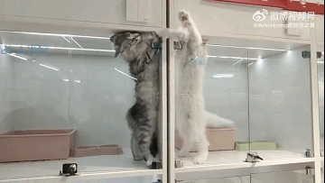 就算被關起來也要打架的兩隻貓