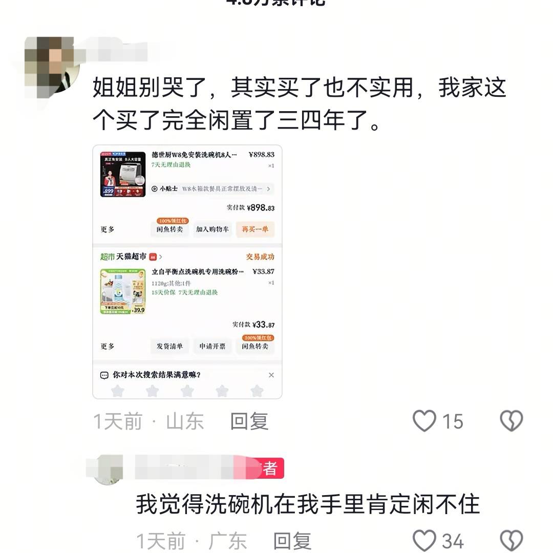 她老公接了電話後,還以為對方打錯了,女子連忙解釋,因為水太涼,就買了一台洗碗機,丈夫當場就不高興了,讓妻子把洗碗機退了。