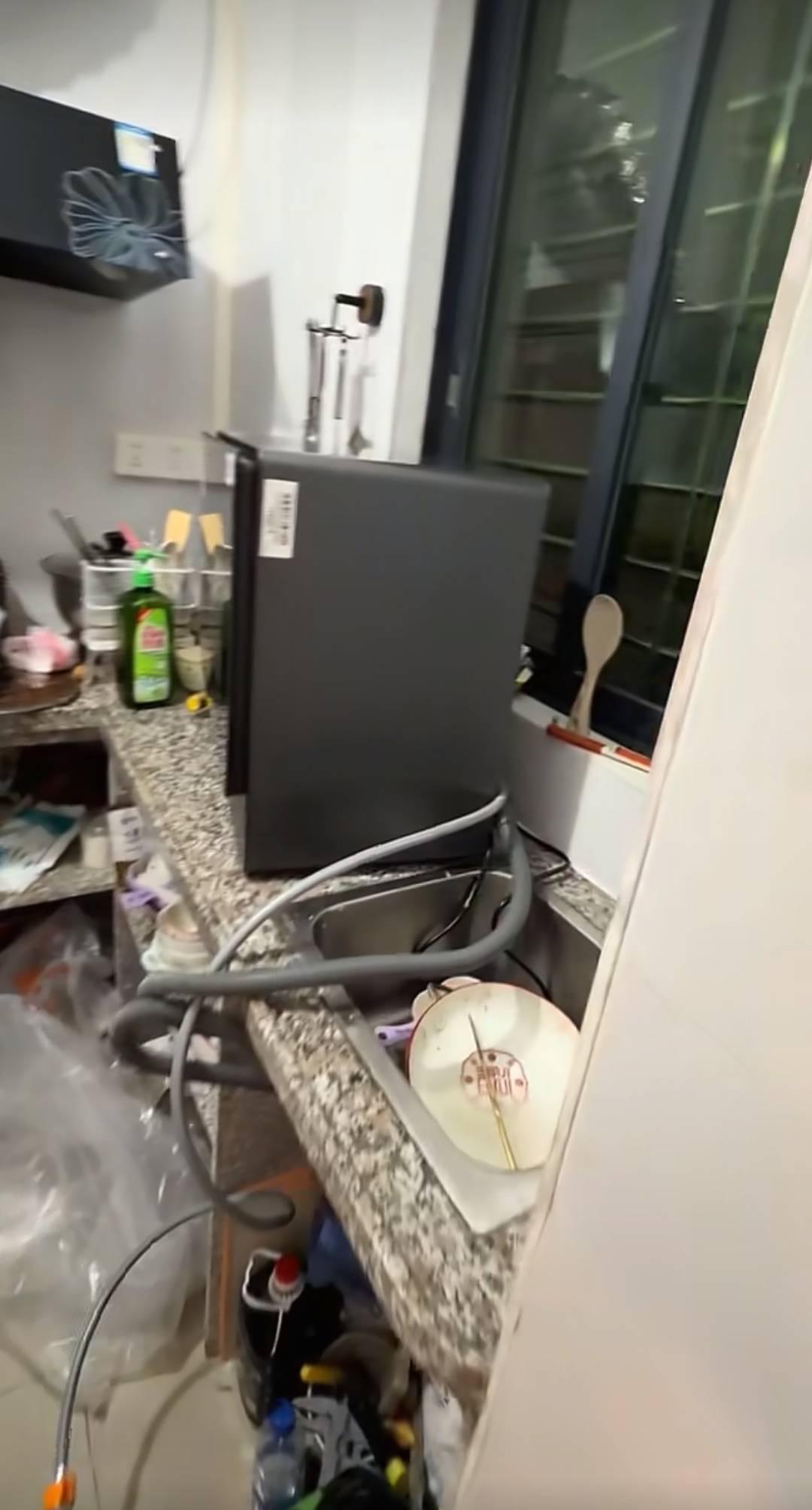 從廚房的視頻來看,廚房的空間很狹小,而且東西又多,之前吃完飯的碗還在水盆裏放著,到底是因為水涼不想洗還是因為懶不想洗呢,如果因為水涼有很多的解決方法,最快的就是完全可以買一個加熱器安裝在水龍頭上,幾秒水就熱了。