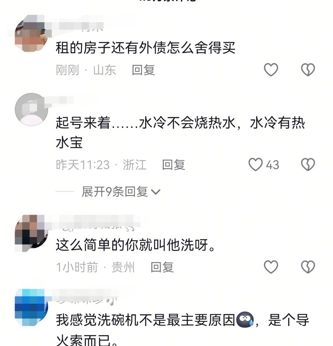 說實話,如果丈夫的工資確實高的話,自己又特別忙,完全可以買一個洗碗機,如果僅僅因為水涼就要買洗碗機,確實有點說不過去。