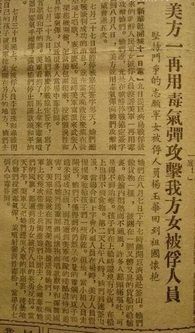據1953年被俘人員遣返記錄,中國人民誌願軍在朝作戰期間,被俘女兵隻有一名,那就是第五次戰役60軍180師後撤時被俘的16歲女護士楊玉華。 *****