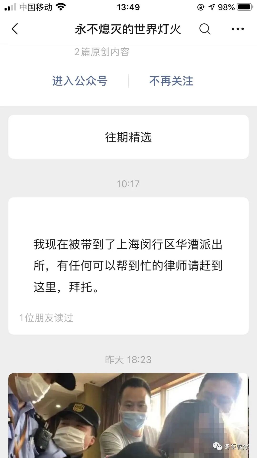 昨天上午,曝光蒙牛伊利的王小七,被上海閔行區華漕派出所的人帶走了,他隻來得及在公眾號裏發了一條求助消息。由於當時我的號裏已經發過文章了,所以寫下本文後,隻能過了零時再發。
