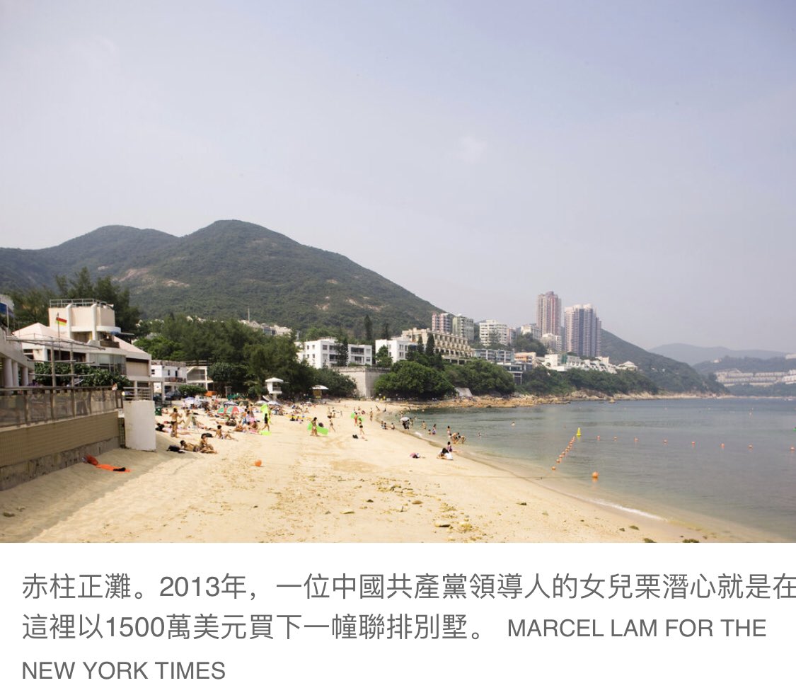 中共領導層在香港的主要敞口之一是房地產。一項《紐約時報》調查顯示,包括栗潛心在內,中共四位高層領導人中的三位有親屬近年在香港購買了奢華住宅,共計價值超過5100萬美元。