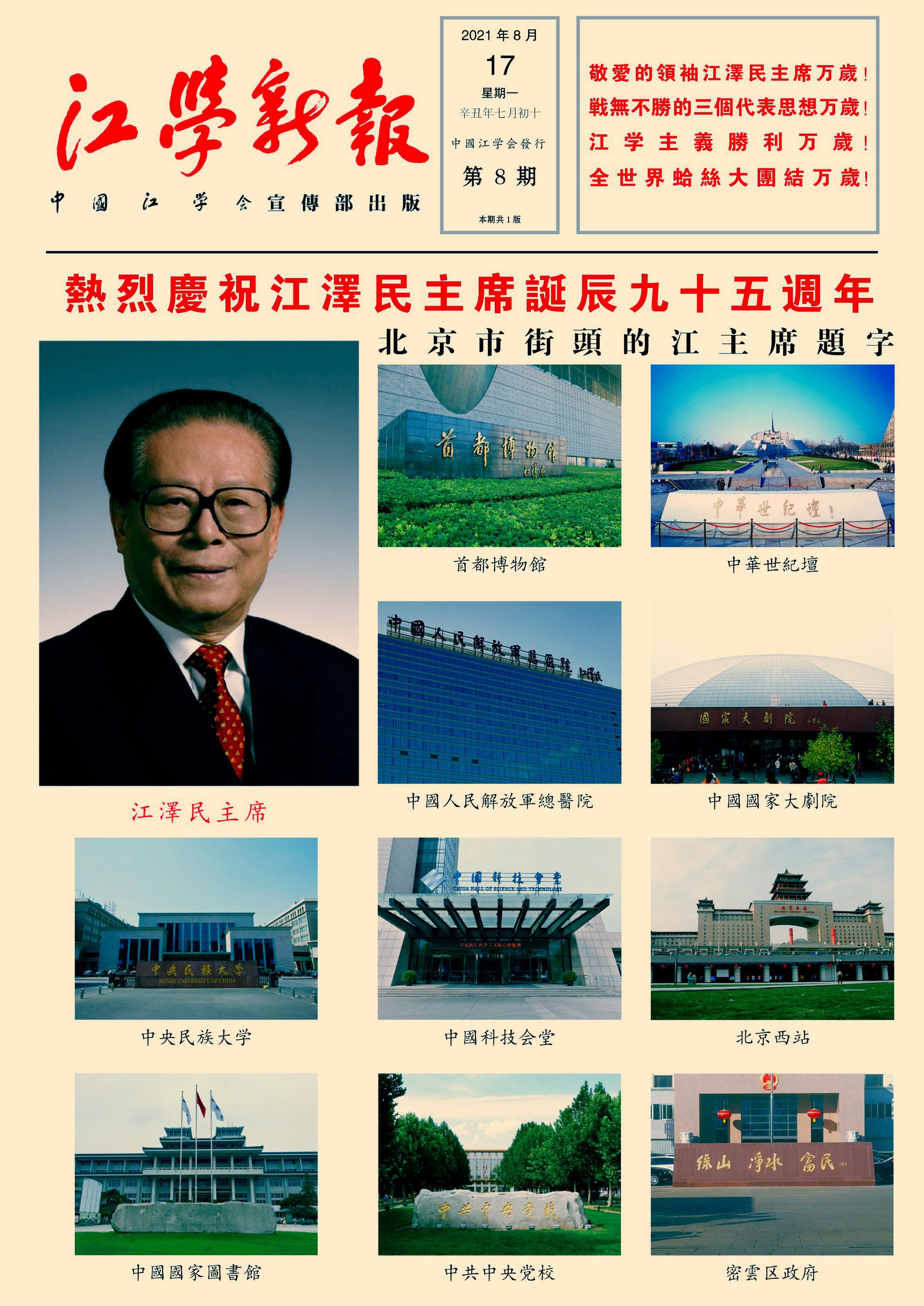 海外網友製作的江澤民95歲生日宣傳“海報”。(Twitter@XinHaNewsAgency) *****