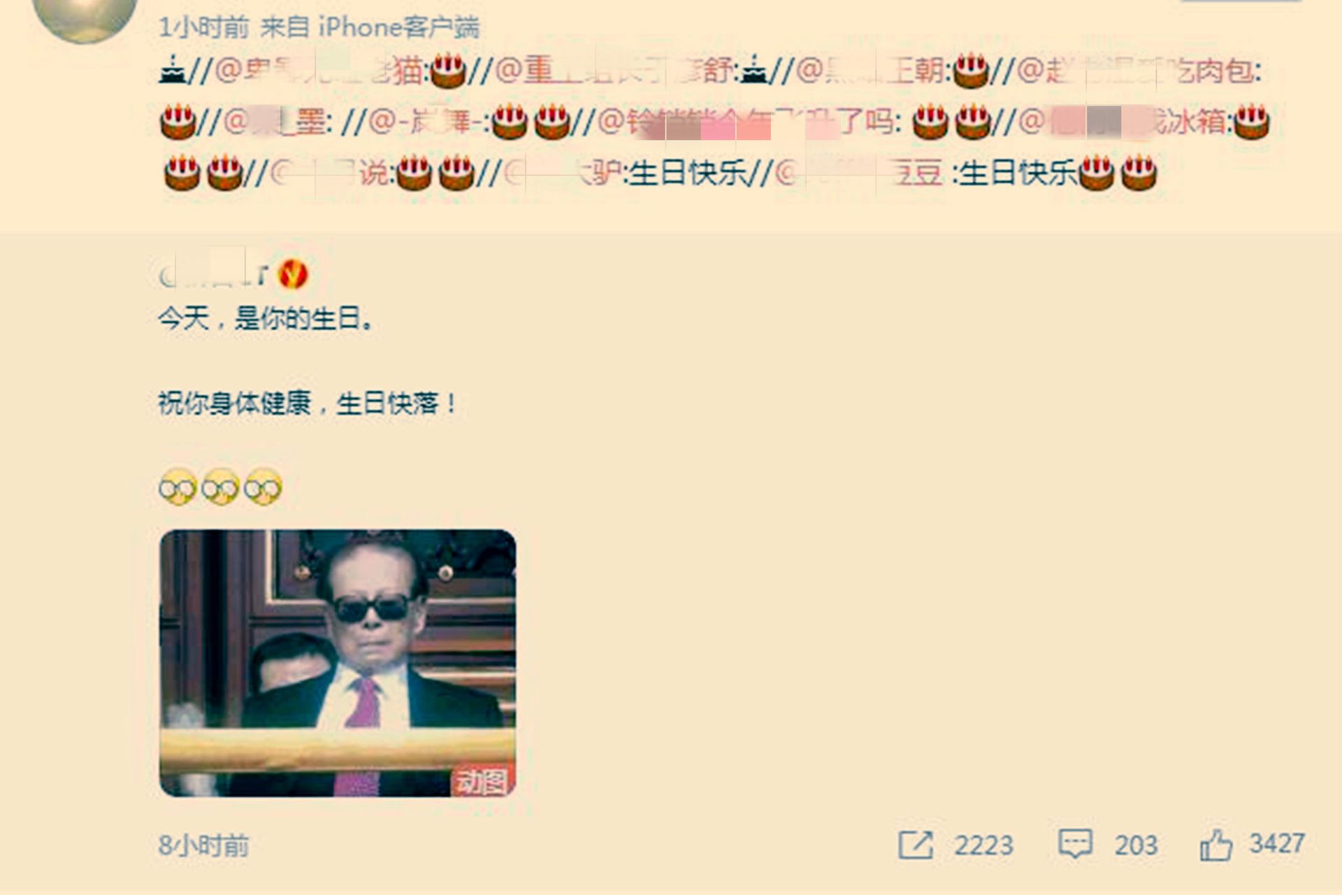 綜合網絡8月17日消息,生於1926年8月17日的江澤民迎來自己的95歲生日,中國網友在微博留言“今天,是你的生日,祝你身體健康,生日快落!”。更多網友跟帖“生日快樂”,並附上蛋糕樣式的表情包。 *****