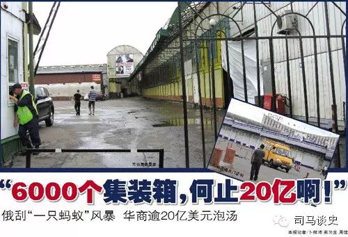 “何止是20億美元!6000個集裝箱啊!每個集裝箱貨物的價值都在50萬到100萬美元之間,這次華商的損失是空前的。”俄羅斯中國浙江同鄉會會長倪吉祥在接受采訪時頗感無奈,“有人跳樓,有人自殺,這麽多人傾家蕩產,可至今什麽問題也沒有解決。”