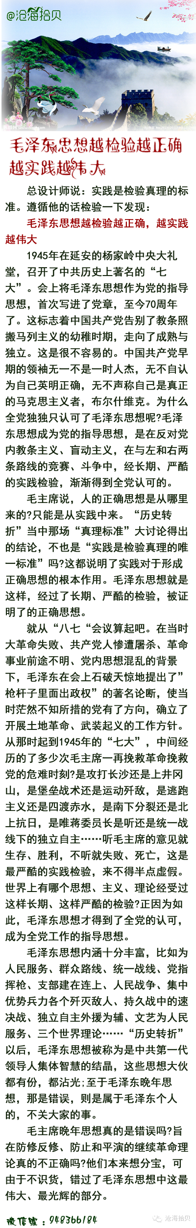 ?毛澤東思想,越檢驗越正確,越實踐越偉大