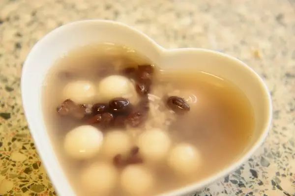 可以說是水煮湯圓的升華版,首先鍋內加入水燒至水開,放入湯圓煮熟,加入酒釀(可取超市買現成的),可以依自己口味加點白糖(也可以不加),開鍋即可食用。有活血化瘀的作用。