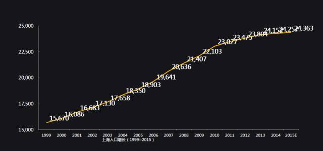 我們還是以上海作為一個樣本。從1999年到2015年,這16年間上海整個人口增加了900萬,900萬人口放到任何一個世界上都是很大的城市,差不多每年流入將近60萬人口,非常巨量的人口流入。