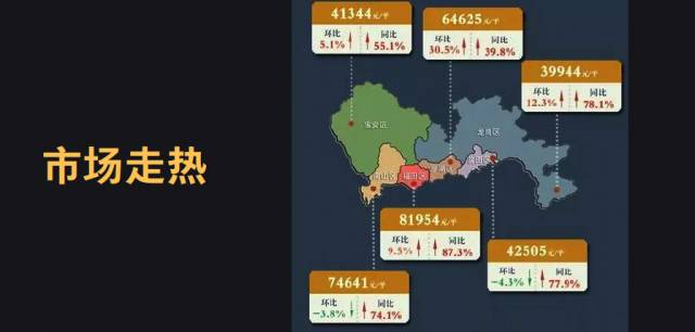 南山同比增幅是74%,福田是87%,鹽田是78%,寶安是55%,羅湖是40%,龍崗是78%。整個深圳的漲幅大概在50%左右,坦白說,這是我從業以來看到的最快的單個城市的漲幅。