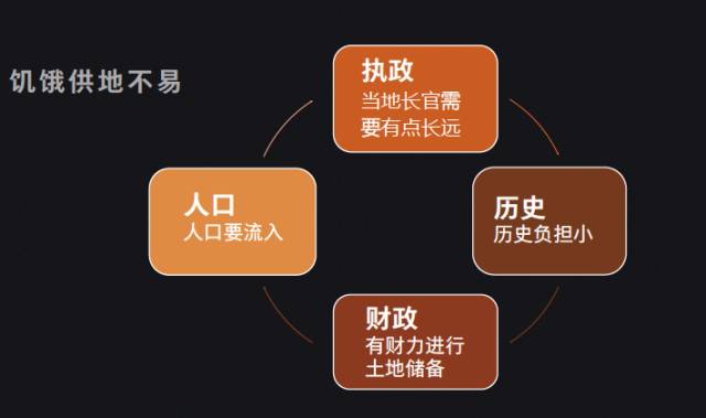 還有另外一個選擇就是照常供地,而且對一般城市來說這個預算是每年增長,今年供的地不是兩年,可能三年才夠用。所以等他卸任以後,新任市長上台會看到怎麽樣?原來我們的土地已經夠十三年用了,我該怎麽選擇?所以幾乎所有的市長隻要能夠在賣得出地的情況下都會做類似的選擇,饑餓供地絕不容易,所以我們可以看到每一次中央調控都是在勒令各個地方政府嚴控土地供應。