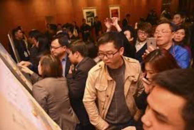 你可以看見不同性別、不同年齡段的中國人在排隊買房,