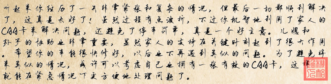 2. **CAA服務車的圖片**:第二張照片裏,有一輛標有CAA標誌的服務車正在進行車輛維修工作。可以看出,CAA的工作人員到場協助處理車輛故障問題。