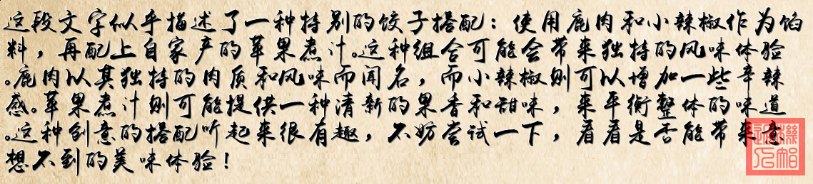 1. **第一張圖片**顯示了一碗餡料,主要成分似乎是鹿肉和小辣椒。這種搭配可能會帶來獨特的風味,尤其是野味與辣味的結合。