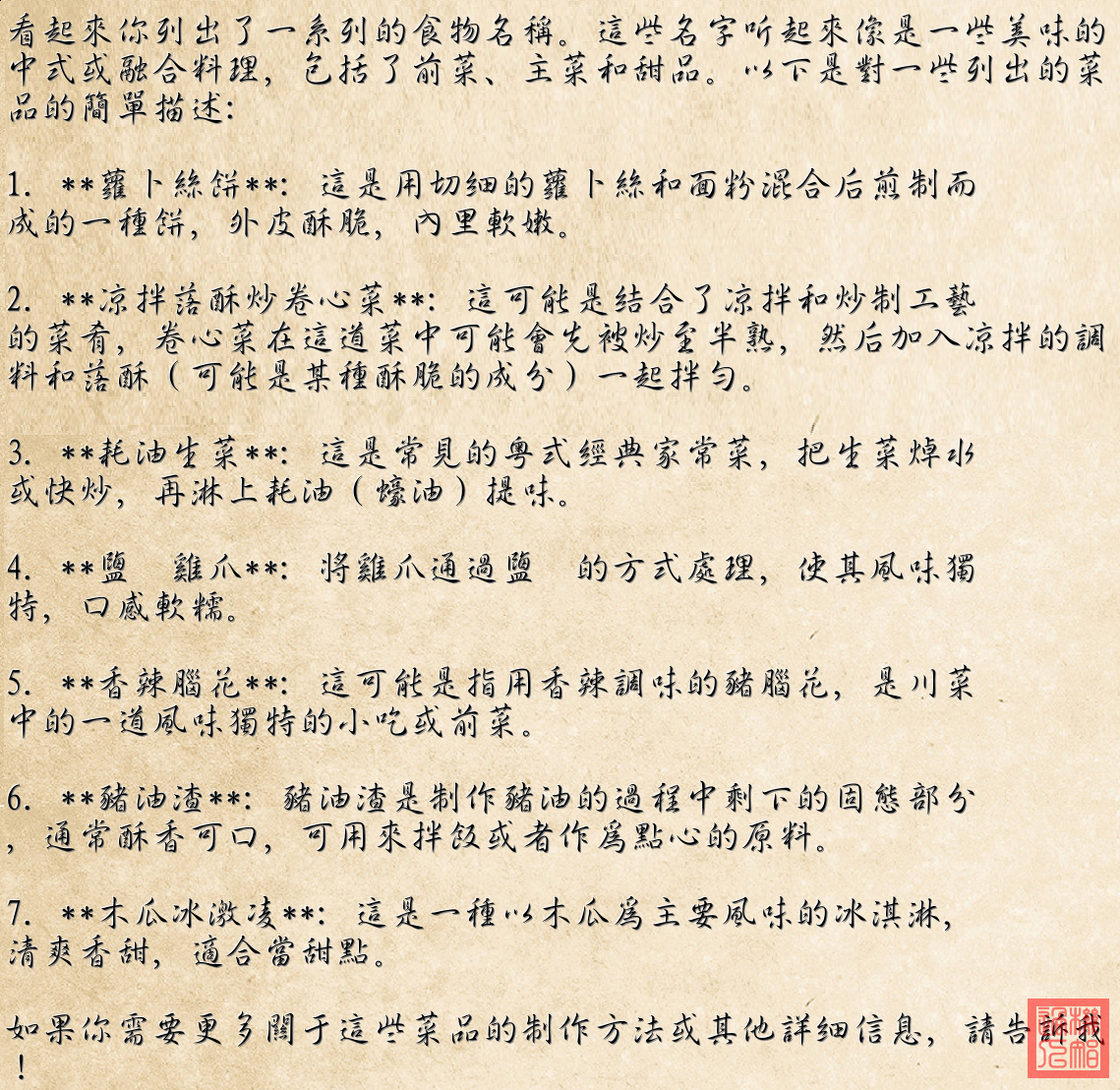 3. **香辣腦花**:用香料烹製的腦花,上麵撒有香菜和芝麻,帶有濃鬱的香辣味。