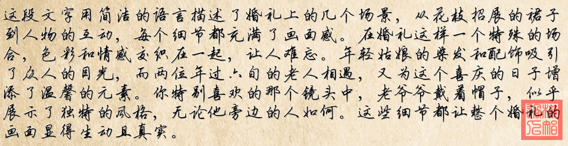 這些圖片共同呈現了婚禮上各種人的風貌與互動,展現了一場充滿活力和溫暖的婚禮現場。