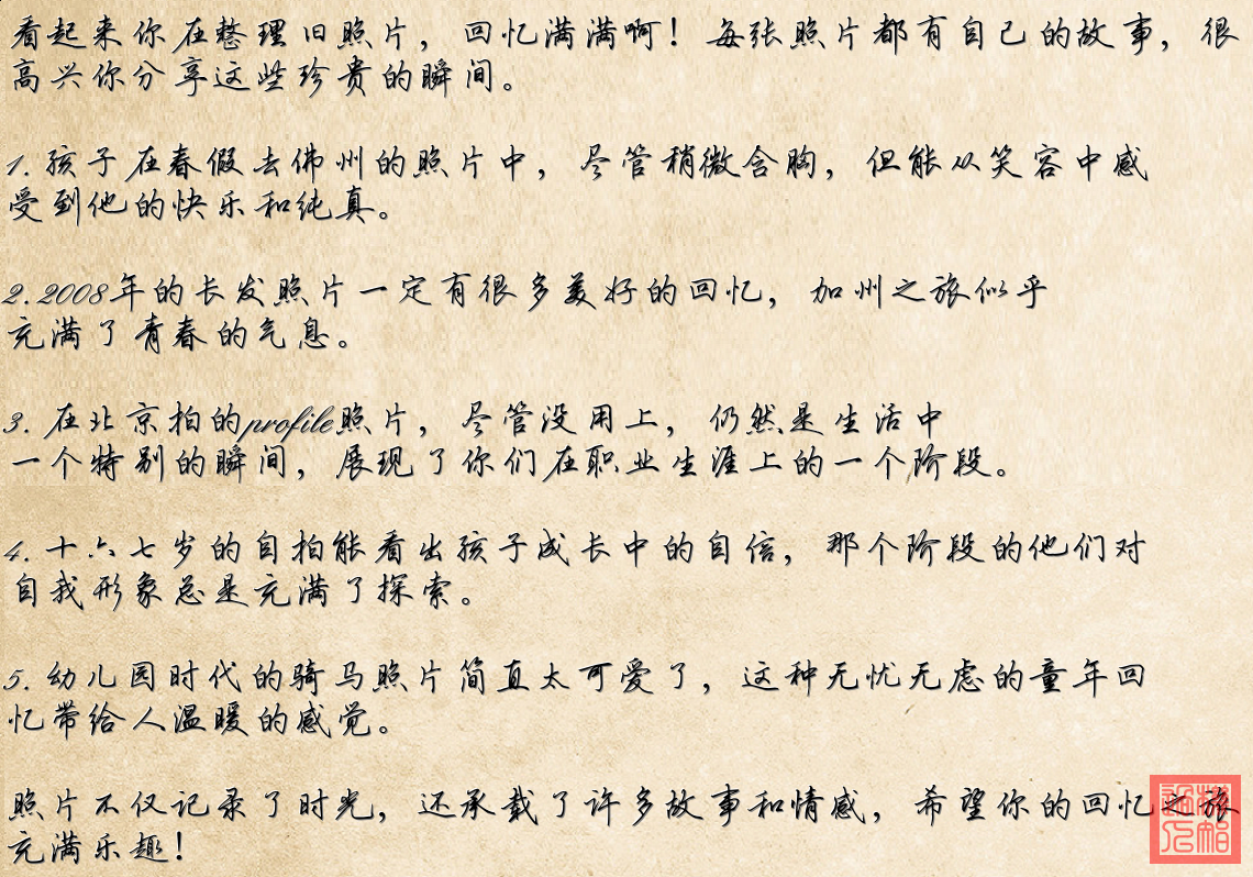 這些照片記錄了一些生活中的點滴和成長過程,每一張都有其特別的意義。
