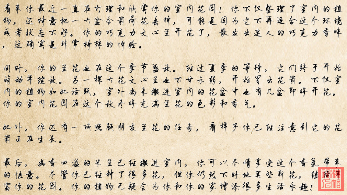 這些圖片主要展示了幾種不同的室內花卉的狀態,體現了植物愛好者對於蘭花(如文心蘭、米蘭等)和其他觀賞花卉的熱情與照料。