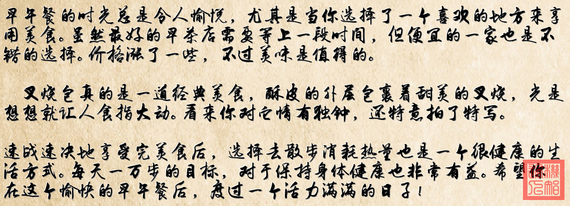 這些圖片展示了在中餐館享用早午餐的情況。以下是圖片中的食物描述:
