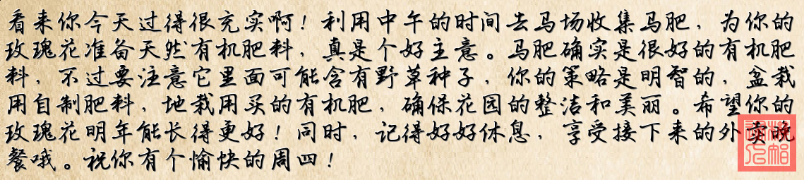- 後備箱裏裝滿黑色垃圾袋和一把鐵鍬,說明近期有收集和處理某些物品的行為(文中提到是馬糞),用於製作玫瑰花的有機肥。