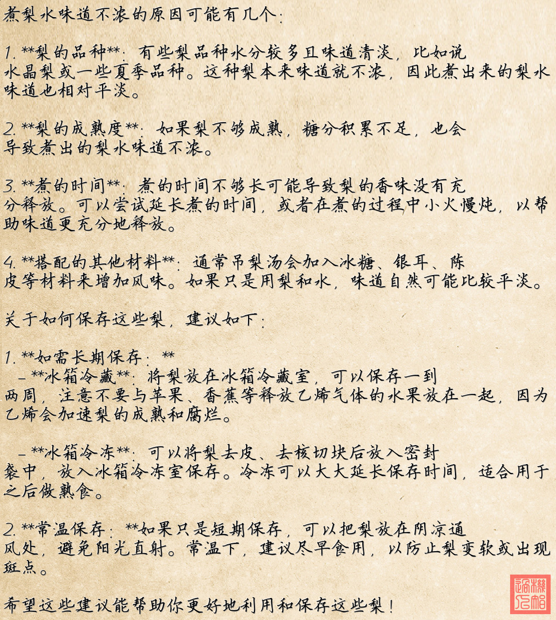 以下是幾點建議,可以幫助增強梨湯的味道: