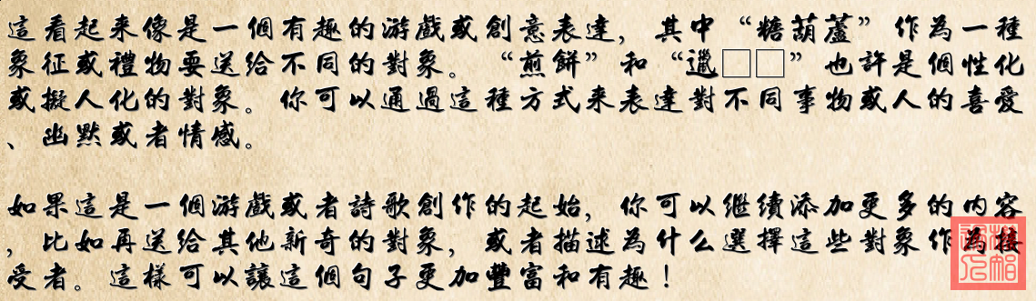 這些物品都很適合作為禮物,尤其是糖葫蘆和可愛的公仔。此外,沒有包含任何新聞內容的圖片。